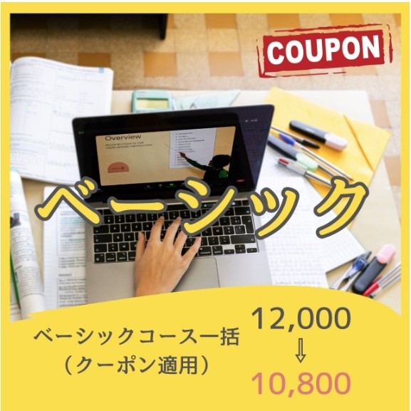 動画視聴しながらサポートも受けるサポート付コースと動画視聴で自主学習するベーシックコースがございます。